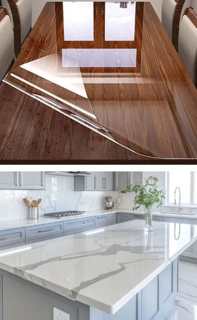 We offer protective films for marble countertops, wood tables, glass tables, dressing tables, and marble dining tables. Our solutions are tailored for various surfaces to ensure optimal protection and maintain the elegance of your furniture.